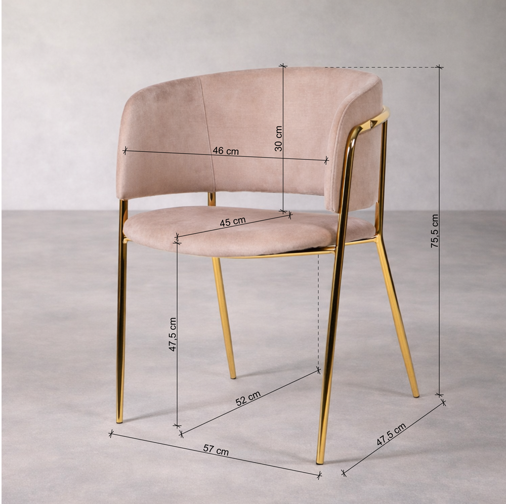 La versión beige de la silla KL Mia representa una elegancia impecable y un diseño práctico . Su tela fácil de limpiar y sus patas de metal dorado le dan un toque elegante, tanto para el comedor de casa como para un entorno profesional de hostelería.