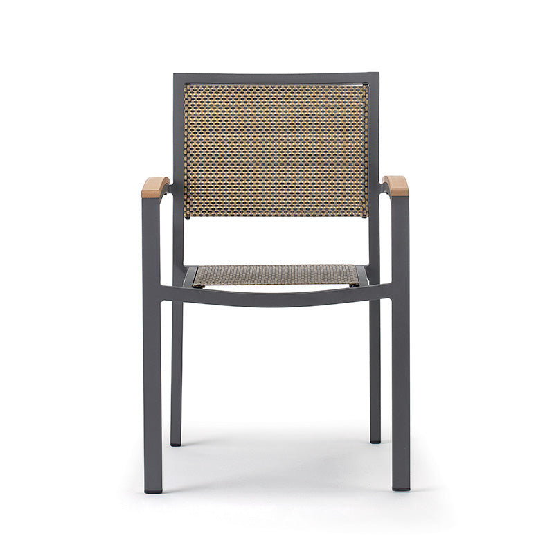 Rakásolható szék karfával – alumínium, textilén és Technowood betétekkel