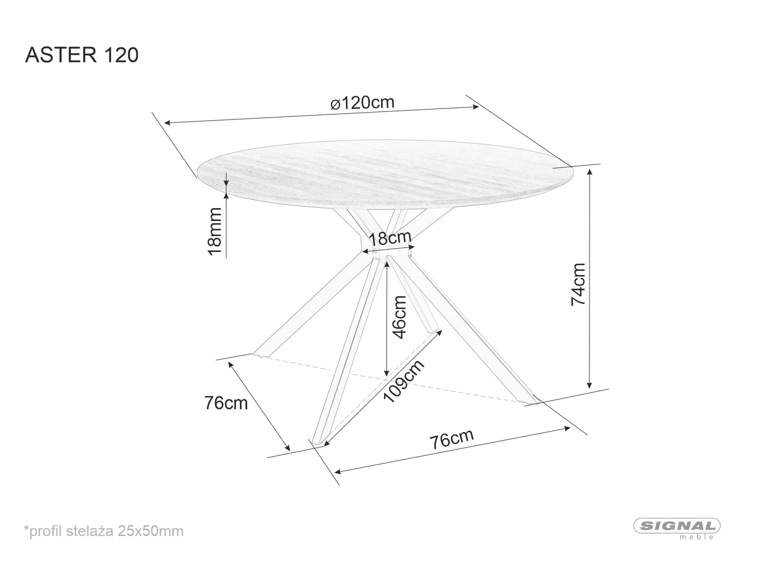 Dimensiones : 120 × 75 × 76 cm.