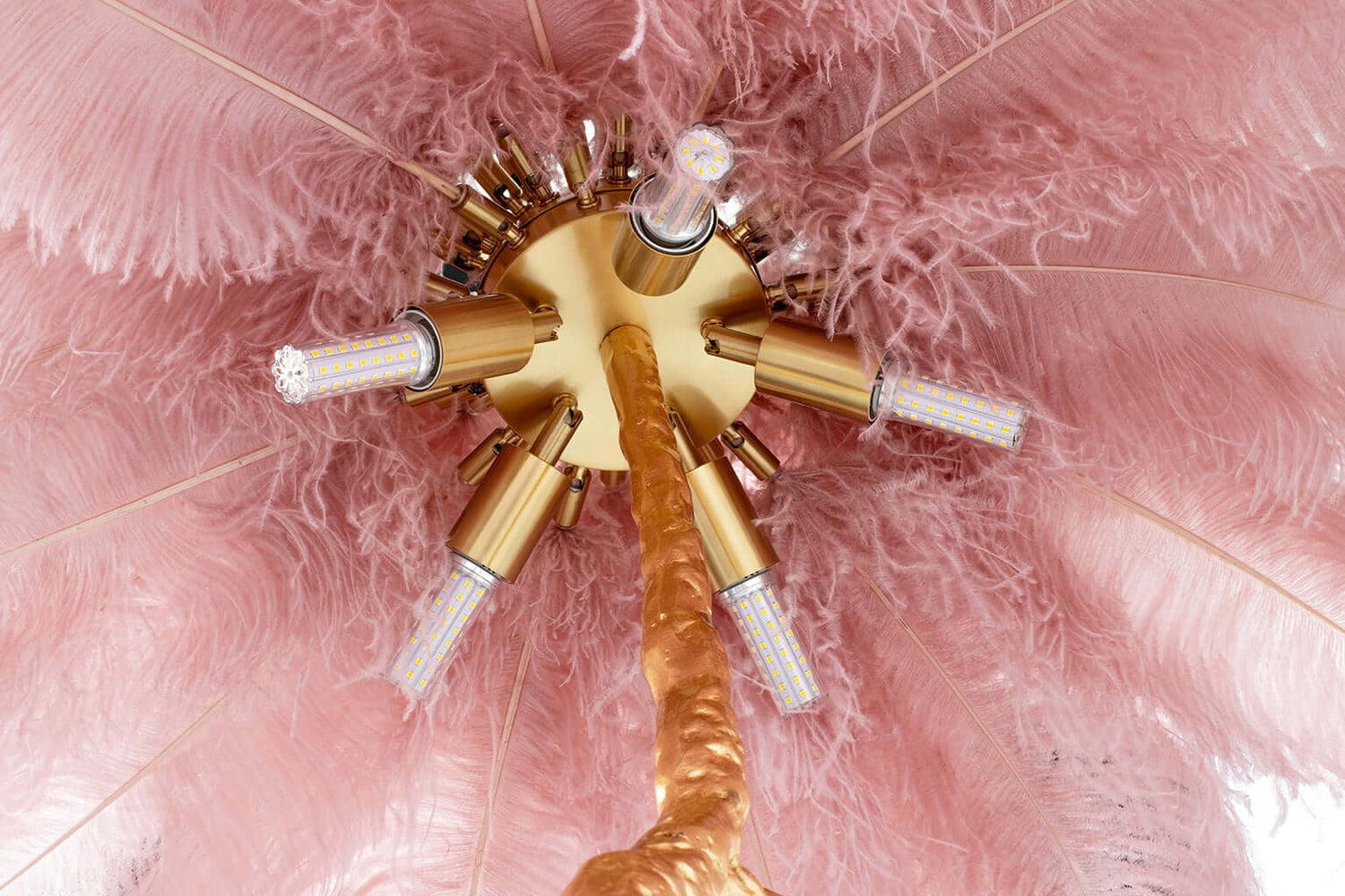 Lámpara de pie Tiffany 175 color rosa-cobre / con plumas naturales